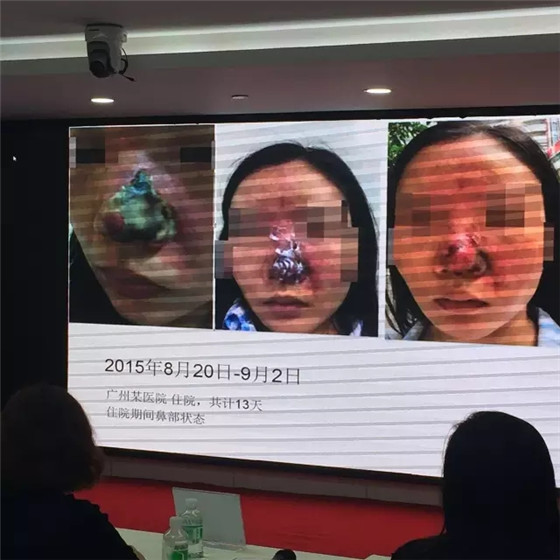 受害人小惠的左侧鼻翼部分组织坏死导致鼻子变形,形成了局部增生性瘢痕,控诉三非整形