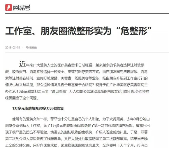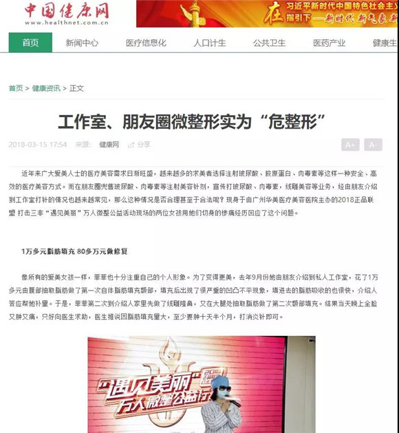 此次公益行动吸引到广东广播电视台、网易、广州广播电视台、今日一线、南方都市报、广州日报、新快报、中新社等多家国内主流媒体争相报道。近日成为民众热议的话题,除了注射假劣产品、非法整形机构对求美者的肆意侵害,更引起民众对爱美问题的关注,不少民众对广州华美医疗美容医院“遇见美丽·万人微公益活动”的善举表示赞赏,也是给整个医美行业做个表率。