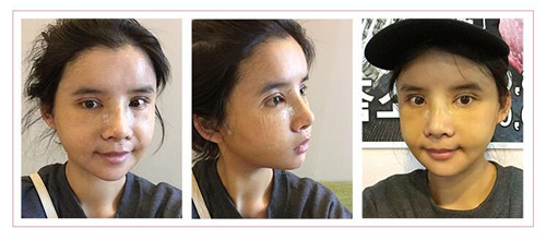 小姐姐是适合整形的体质吧,消肿的速度特别快,脸上虽然还有一点黄色淤青,但稍微用粉底就可以盖掉了,双眼皮也越来越自然。