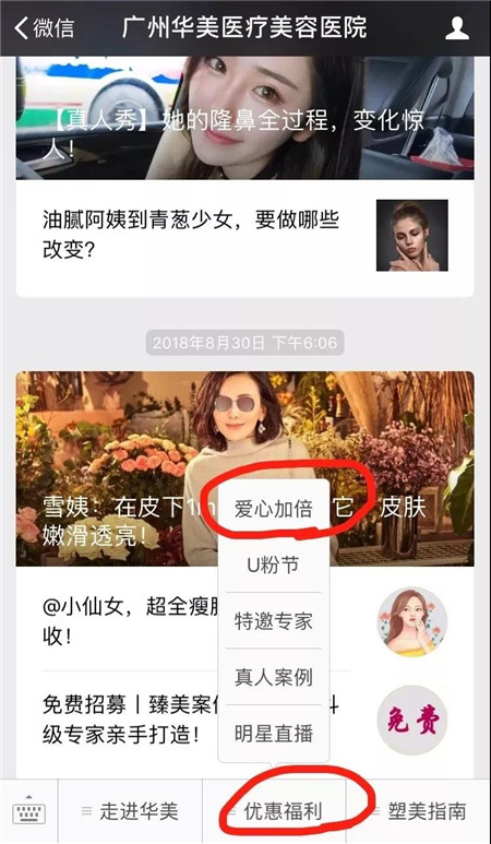 2:搜索‘广州华美医疗美容医院’公众号——优惠福利——爱心加倍卡;
