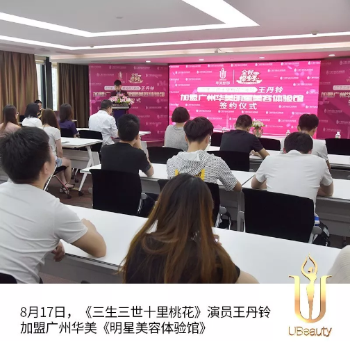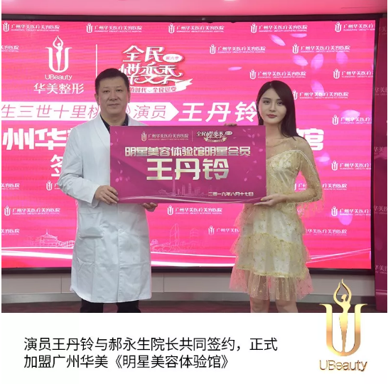 在8月17日签约仪式上,正式加盟广州华美明星美容体验官,成为全民蝶变季首位明星体验官。
