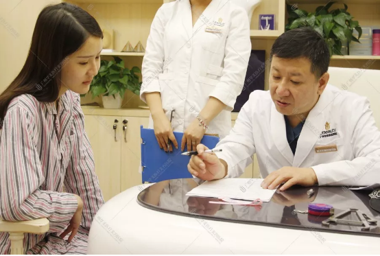 8月16日,由广州华美副院长郝永生与微创注射医师苏亮为王丹铃进行综合会诊。