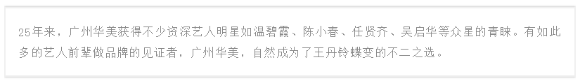 王丹铃作为年轻演员的道路还有很长,在安全合理的范围内变美,让自己的事业走的更远,就是一件值得去做的事!“理智整形,励志整形”一直都是广州华美传播的医美正能量,广州华美希望并鼓励每一个爱美者都能有实现自己变美的权利。而广州华美在做的就是帮助这些人实现愿望,成就梦想。美的事业,从来不止于外表的改变,我们更期望的是通过外表的美为求美者带来更丰富的内核,更自信的张力,更从容的应变,勇敢的向这个探出你的触角,让人生拥有更多的可能性。