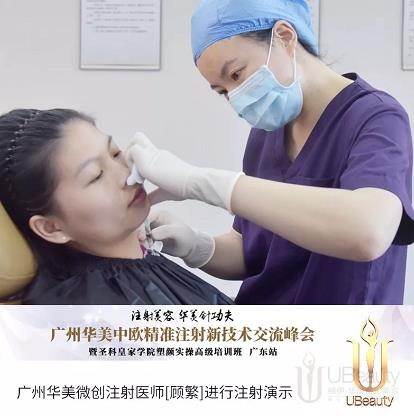 广州华美“针”功夫医师团由中国注射美容高级导师赵晶晶领衔杨澄宇主任、张中亮主任、顾繁主任、朱葛勇主任、苏亮主任、于赫楠主任等,所有注射美容医师必须拥有十年以上的注射临床实践经验,注射案例至少10万例以上。必须是正规医学院毕业,必须具备《医师资格证》《执业医师证》,必须经过3-5年、若干课时的注射高级培训课程,如美国艾尔建(乔雅登和BOTOX)中华区医师培训会、高德美(瑞蓝)医学美容技能培训会、爱贝芙注射医师高级培训会等,每年参加由中国医师协会美容与整形医师分会、激光亚专业委员会、微创抗衰老亚专业委员会主办的激光美容与注射美容大会,学习、吸收前沿的微创美容理论及技术。