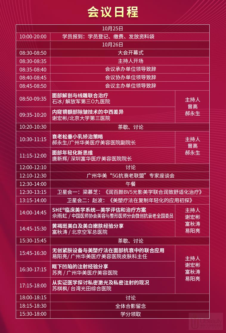 此次高峰论坛汇聚整形外科及美容领域学术权威,包括大会主席/中国中西医结合学会医学美容专业委员会鼻分会会长/广州华美院长【曾高主任】、中国整形美容协会面部年轻化分会副会长【石冰主任】、中华医学会医学美学与美容学会会员【富秋涛主任】、中国中西医结合学会医学美学专业委员会委员【谢宏彬副主任医师】、浙江医学会第六届理事会整形外科学会副主任委员【佘雨虹副主任医师】、中国医师协会美容与整形医师分会乳房专业委员会委员【唐新辉副主任医师】、中国台湾医学美容医学会专科医师【苏棋枫医学博士】、广州华美外科副院长【郝永生】、广州华美美容皮肤技术院长【易阳亮】、广州华美微创注射医师【苏亮】等抗衰老医师及西班牙英诺皮肤世家中国区医学总监【赵波】,他们将围绕如何从“单项目抗衰”向“全度抗衰”发展,分享新技术、新成果、新案例,并深入研究5G全度抗衰未来发展趋势,全面促进抗衰老技术的创新与临床水平的不断提高。