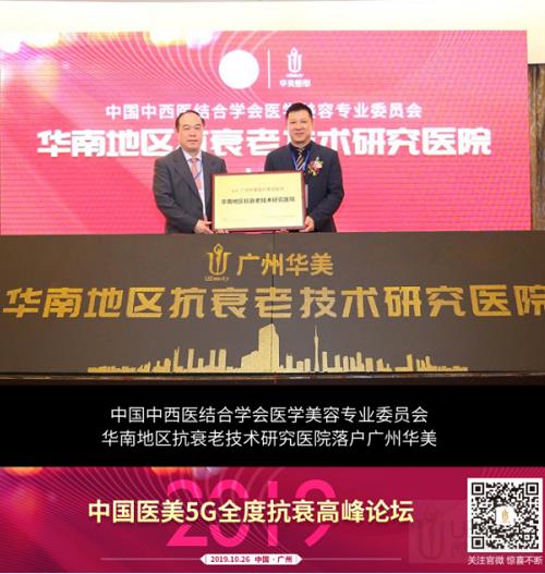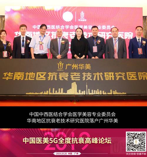 2019年10月26日,由国家卫健委直属中日友好医院主办、广州华美医疗美容医院承办、科医国际贸易(上海)有限公司/广州博粹生物科技有限公司协办的高规格学术盛会——2019中国医美5G全度抗衰高峰论坛在广州云来斯堡酒店盛大举办。由中国中西医结合学会医学美容专业委员会授予的【华南地区抗衰老技术研究医院】正式落户广州华美,抗衰老技术研究医院的成立,必将掀起一番崭新的全民抗衰浪潮,打造行业新标杆!