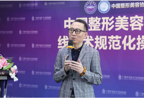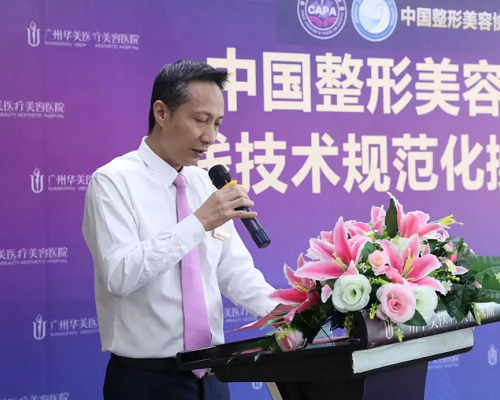 ▲广州华美张副总致辞中强调行业协会各医师团更是广州华美医疗美容医院技术平台的坚强后盾!