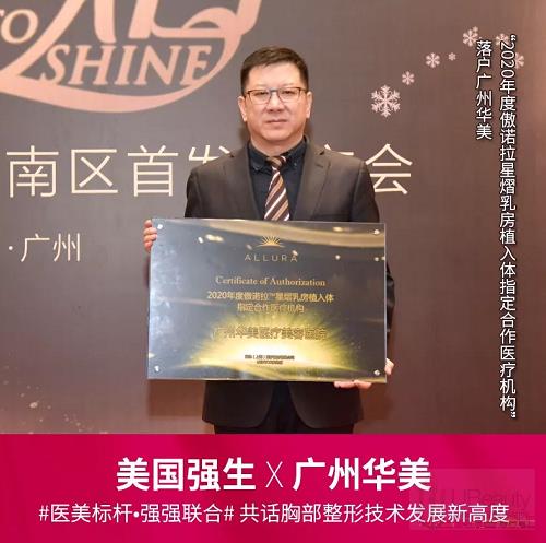 此次发布会上,广州华美再添殊荣,被授予“2020年度傲诺拉星熠乳房植入体指定合作医疗机构”。这意味着广州华美无论在医疗硬件水准、专家技术、品牌影响力等综合实力都受到了美国强生MENTOR公司的高度认可,彰显了广州华美在医美领域的高地位。