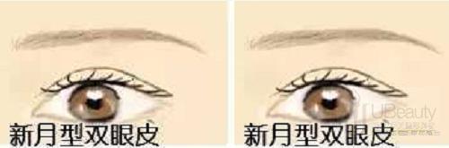 特点:新月型双眼皮的特点就是在内眦、外眦(眼角)靠近重睑线,睑中间部分稍宽,看起来就像一轮崭新的月牙一样好看。